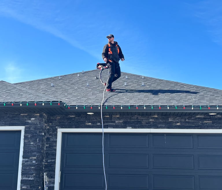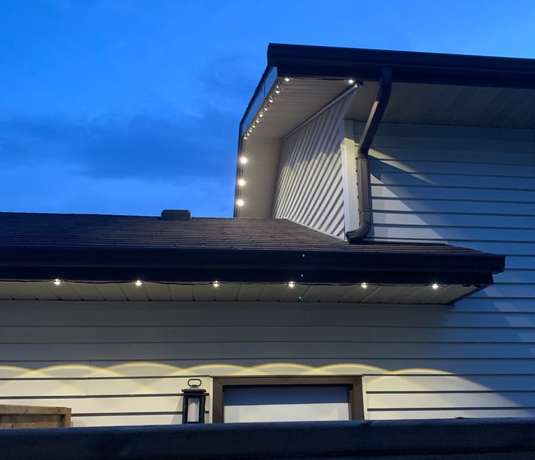 Stop climbing ladders in the Alberta cold and enjoy custom, app-controlled lighting that looks like classic trim by day and a celebration by night.